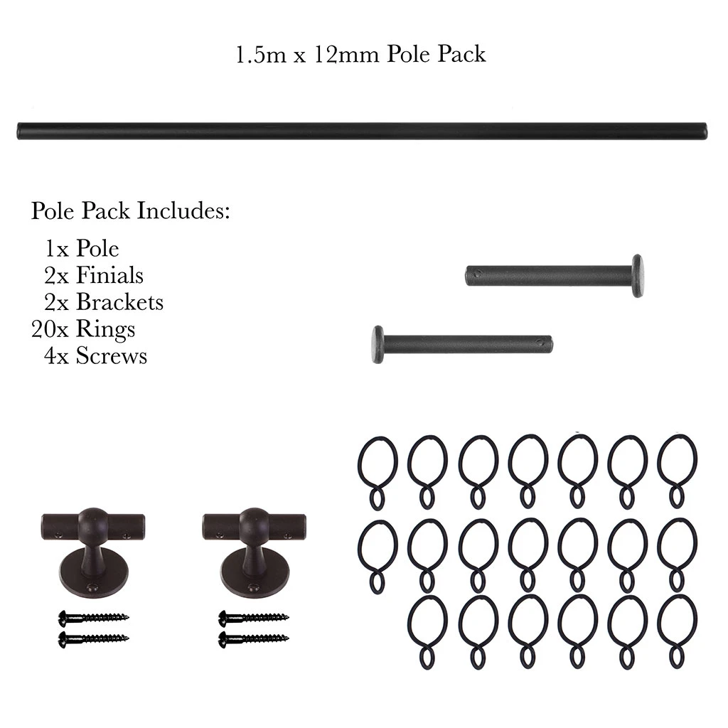 Each pack contains all you need to dress one window and comes complete with curtain pole, finials, rings and brackets: