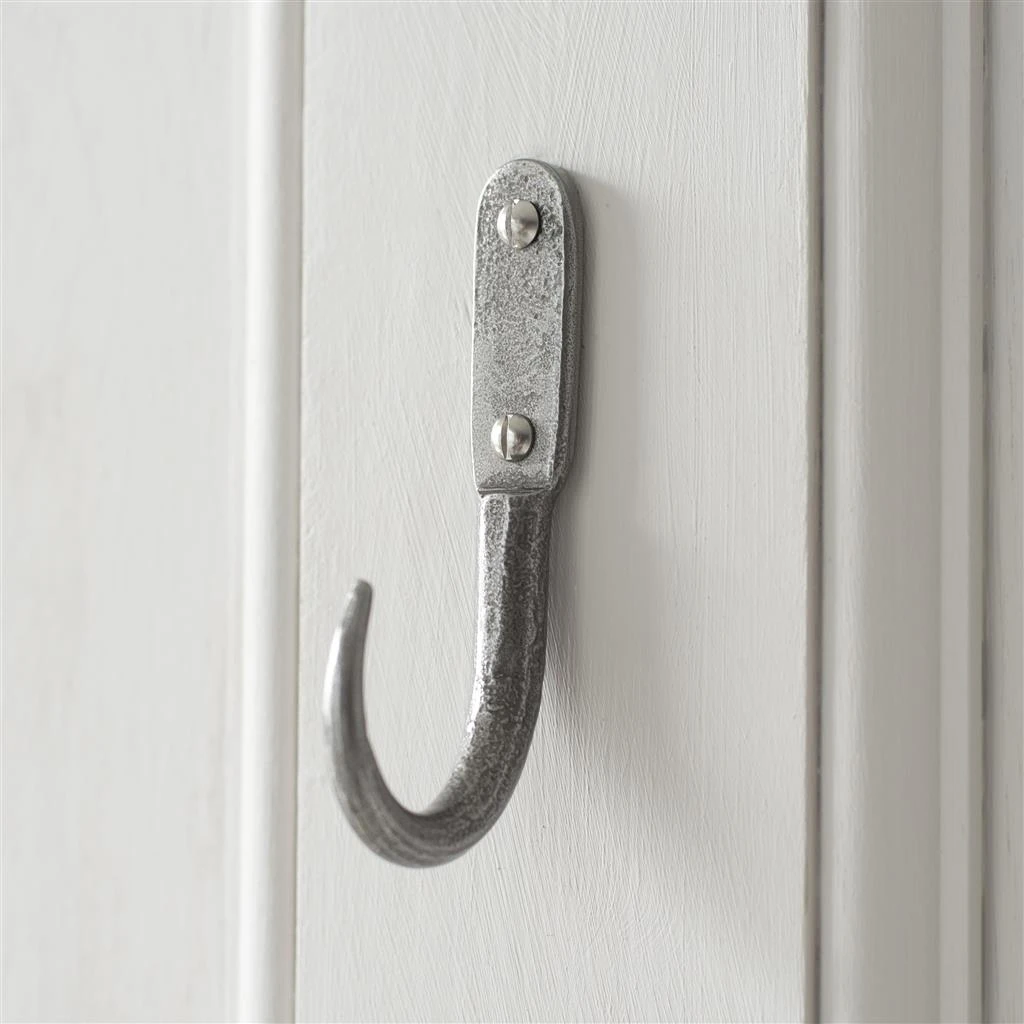 Our hand forged, individual Barn Wall Hooks will bring a lovely rusticity to your kitchen or bedroom where they make an ideal tool for hanging your kitchen utensils, favourite pots and pans or for storing heavy dressing gowns and coats. These hooks have something of an agricultural look about them in that they have been styled with a hammered finish and pointed tips for that artisan touch.