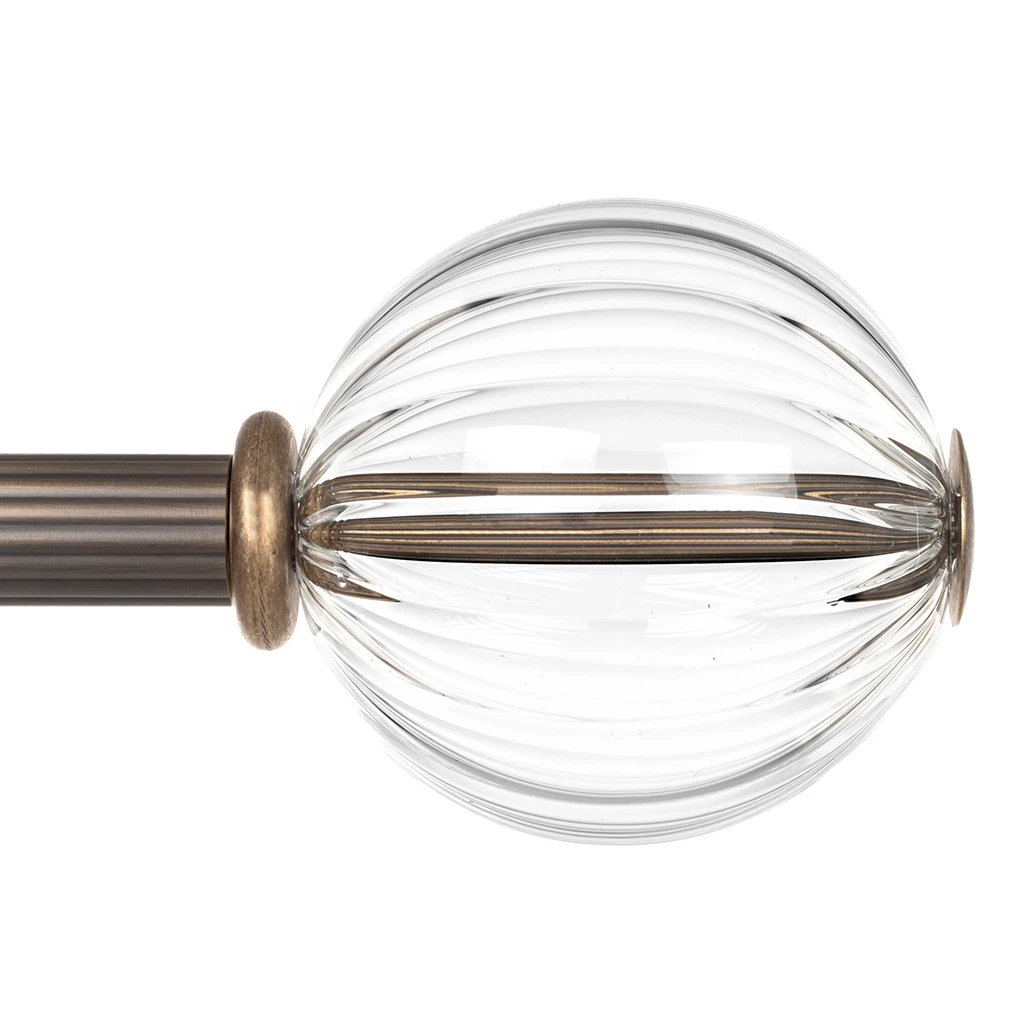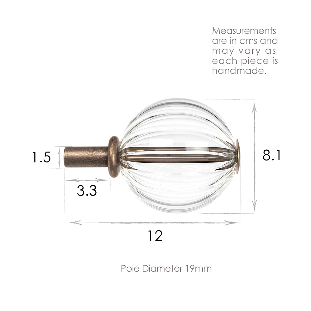 We are delighted to introduce you to our new, beautifully reflective, clear and fluted glass ball finials – a perfect companion for our antiqued brass curtain poles. These handblown glass balls have a classic appearance and weighty quality that will finish your window dressing perfectly and give you endless pleasure looking at them.