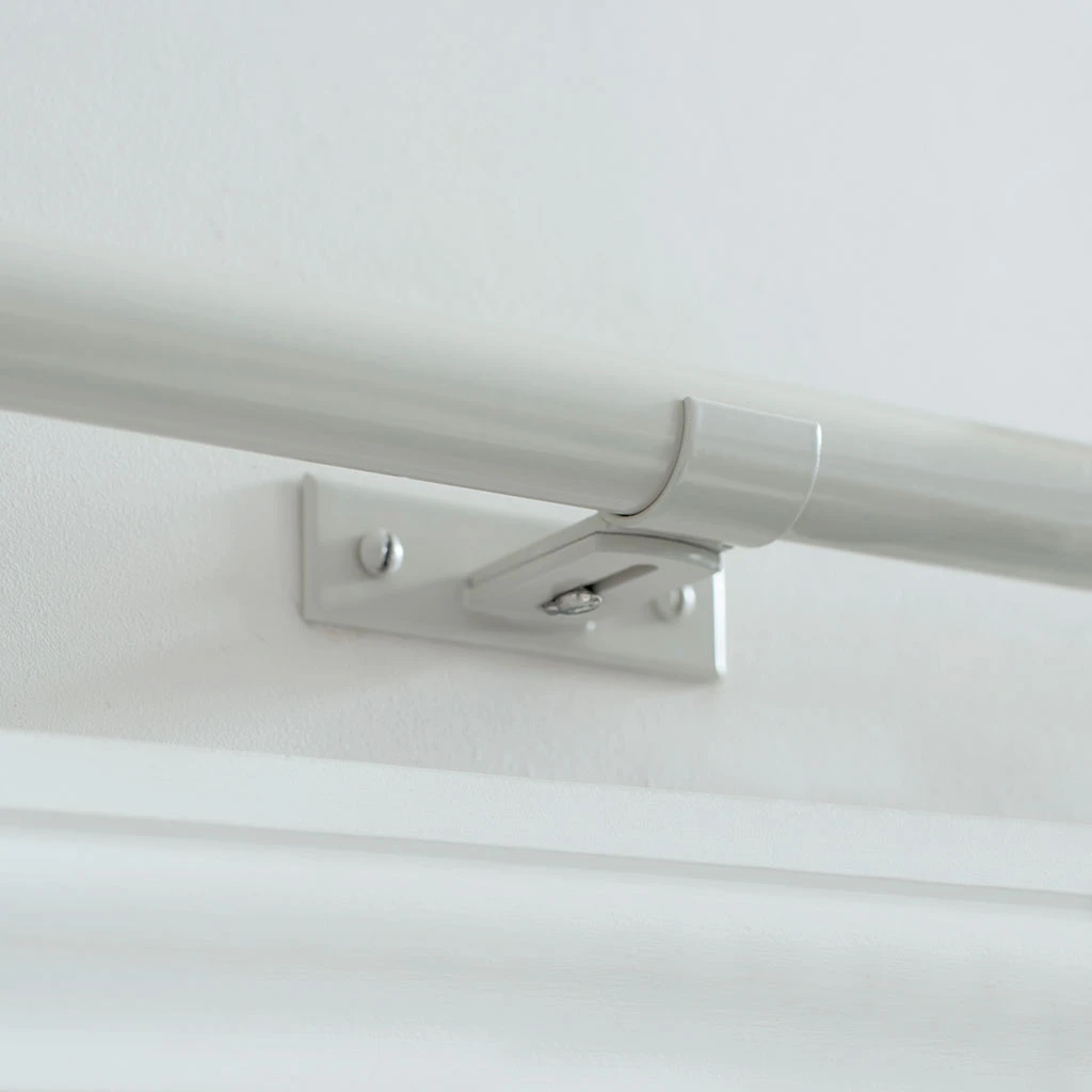 The brackets have an adjustable arm that enables you to fit a pole 5.5 – 7.2cm from the wall to suit your requirements. They work in conjunction with our 20m poles, any of our 20mm bracket range and our C-shaped 20mm Stoke Ring and Passing Rings for a complete system. Hand forged from high quality steel, these brackets are finished in our lovely off-white/grey Clay paint for a soft, country house look. We also make a wide range of complementary finials, rings and curtain holdbacks for you to choose from.