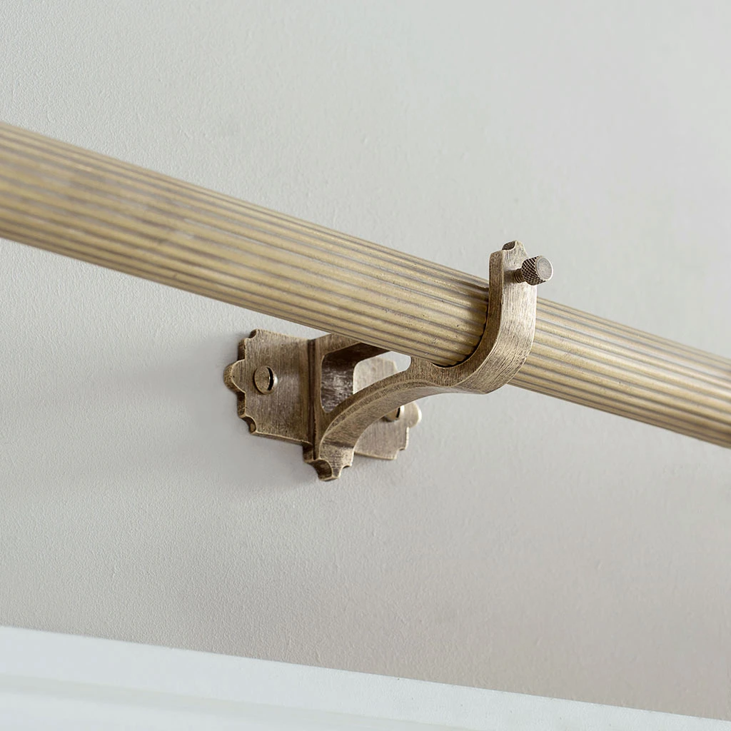 Handmade at Jim Lawrence from natural brass which has been lightly antiqued for a subtle, aged look, these brackets from part of our stunning collection of brass curtain pole accessories, including centre and recessed brackets, rings and a wide range of lovely finials to personalise your look. All our products are made using traditional metal working techniques and are hand finished to the very highest standards here at our Suffolk workshop. We are very proud of the details of the design which highlight the skill of our metal workers and their ability to make products that suit both contemporary and period properties.