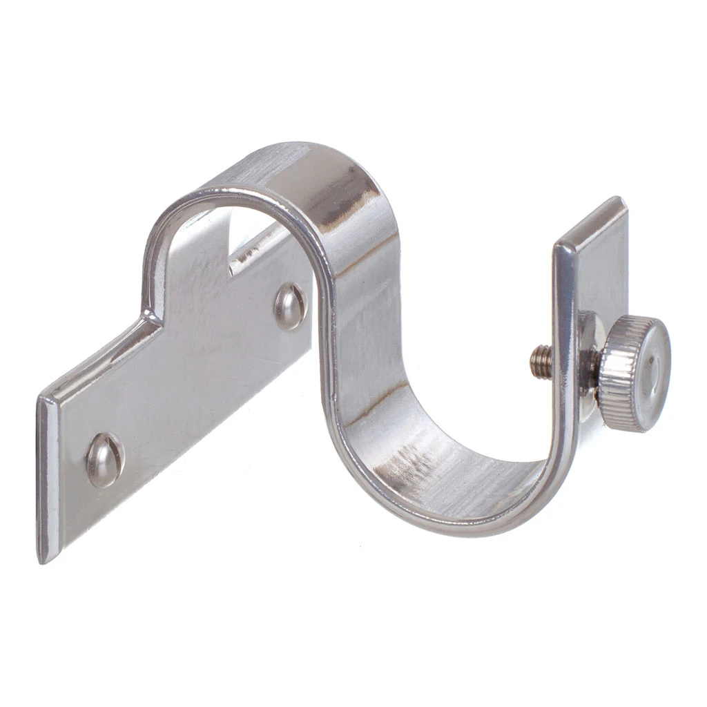 Our 25mm Chapel Centre Brackets are the perfect companion for your forged iron curtain poles ensuring they will look fabulous for years to come in whichever room they are fitted. Finished in Mercury for a contemporary silver grey finish, these brackets are made from premium quality steel and are suitable for all curtains. We also make a wide range of complementary finials, rings and curtain holdbacks for you to choose from. The brackets have a decorative thumbscrew at the front to help secure your pole, and chamfered edges for an elegant finish.