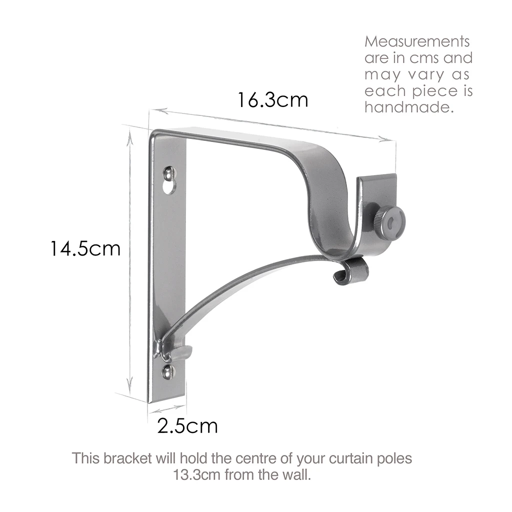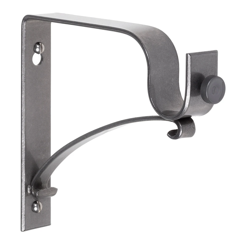 These brackets fit at either end of our 20mm forged iron curtain poles and have a decorative support arm for additional strength. All Jim Lawrence products are made using traditional metalworking techniques that have been passed down through the generations and are designed and finished to the highest standards at our Suffolk workshops. Browse our stunning collection of brass and iron curtain pole accessories, including centre and recessed brackets, rings and a wide range of finials to personalise your look.