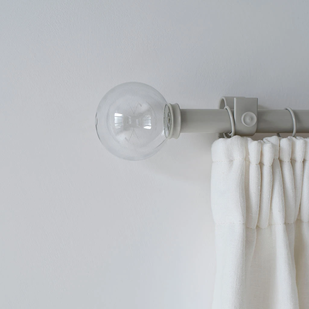 The finials form part of our stunning collection of curtain pole accessories including centre, sleeve, extended and recessed brackets, a variety of curtain rings and a wide range of lovely finials to personalise your look. Once fitted inside the pole, the finials are fixed in place with a tiny grub screw that is located at each end at the back of the pole.