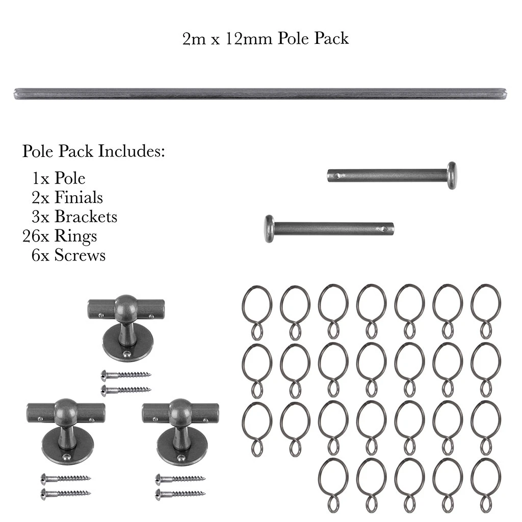 Complete your curtain designs with our ready-made 2m, 12mm Button Pole Pack in our gunmetal grey, Polished Lacquer finish for a contemporary look to your window. The packs are designed as an elegant, yet quick and easy alternative to our classic range of poles.