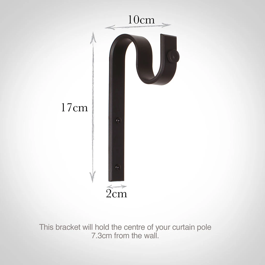 - Standard brackets are generally used at either end of your pole. With a reach (depth) of 10cm to the front of the pole, they will fit most window settings.