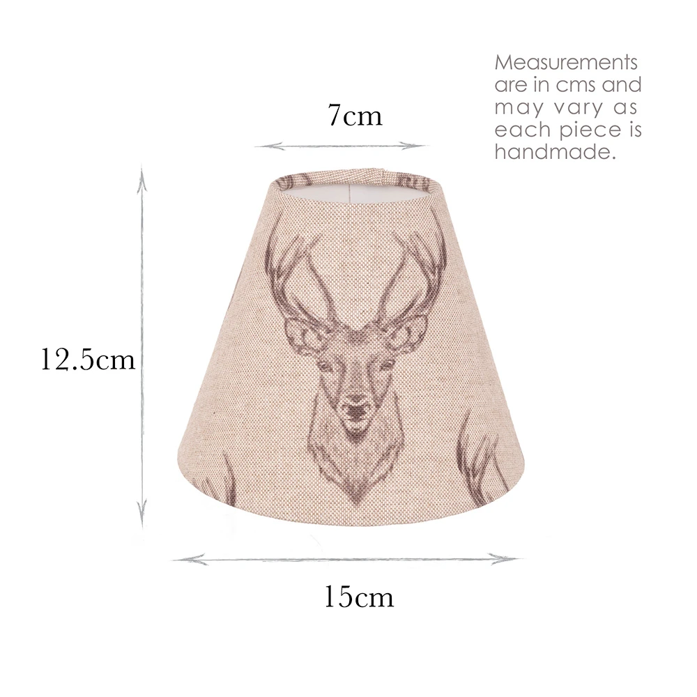 We are delighted to introduce our gorgeous new country themed classic candle shade in our Natural Stag cotton mix fabric featuring a printed watercolour-style Stag head motif on a natural background that perfectly encapsulates our agricultural heritage. Our handmade collection of candle shades are available in a range of colours for creating the perfect finish for your wall lights.