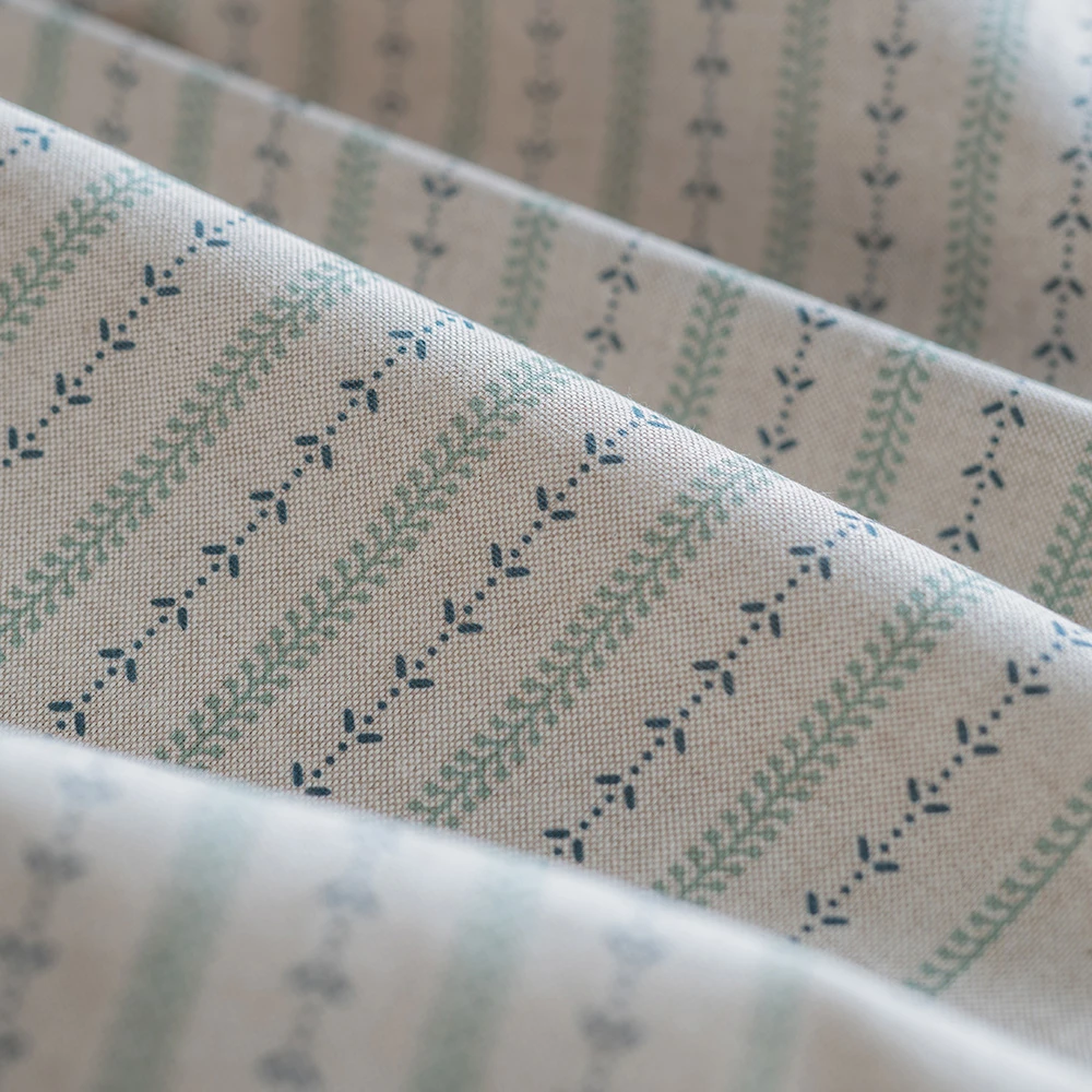 This lovely new Cottage Stripe fabric features subtle, diagonal stripes of duck egg blue and indigo garlands on a neutral background inspired by the colours that adorn British cottage gardens in the spring and summer months. Our latest fabric additions combine vibrant hues with organic tones and textures in a collection that is ideal for a sense of laid back living.