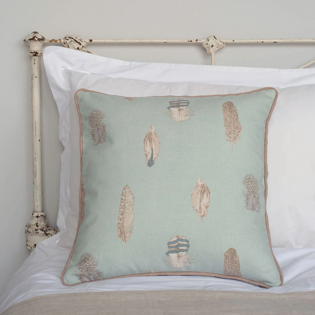 Our talented soft furnishings team has been busy matching them with contrasting colours so that you can have them with, or without contrast piping. Shown above in our Duck Egg Blue Featherdown, this cushion cover is a sumptuous square with piping in Limestone Linen. Its delicate feather pattern makes a charming cushion cover that can be effortlessly combined with our other fabrics for a complete country modern look. Known for its versatility, cotton is an ideal fabric for soft furnishings as it is durable, easy to clean and drapes well, lending itself to decorative designs. It has a tight weave, uniform appearance and smooth texture that makes it a lovely alternative to linen.