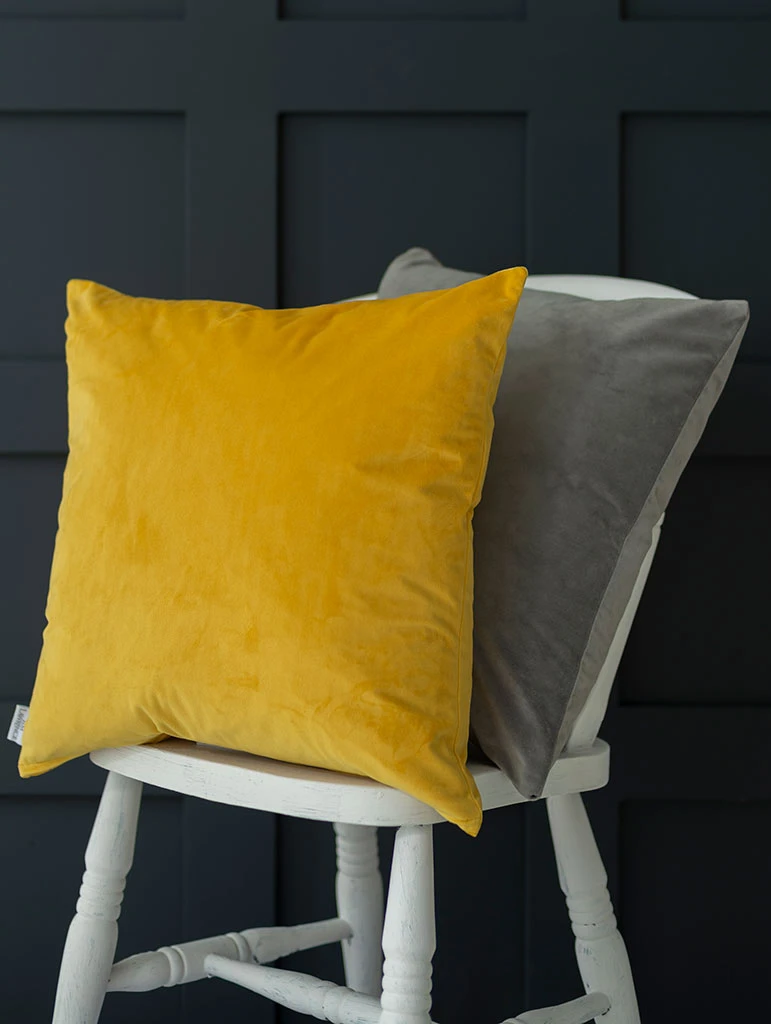 Velvet has seen a huge resurgence in popularity recently thanks to the trend for dramatic interior colours based in far eastern colour themes. Characterised by its rich depth of colour and tactile ‘nap’, the fabric is coveted for use on headboards, drapes, cushions and upholstery. This cushion is oversized with a clean, unpiped seam that will catch your eye wherever it sits.