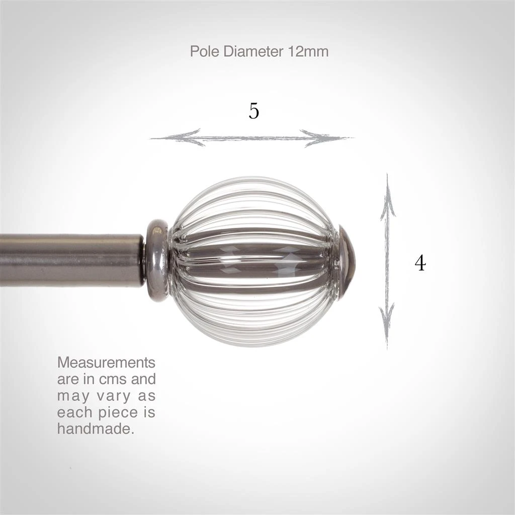 Browse our beautifully reflective, clear and fluted glass ball finials – a perfect companion for our forged iron curtain poles. These hand blown glass balls have a classic appearance and weighty quality that will finish your window dressing perfectly and give you endless pleasure looking at them.