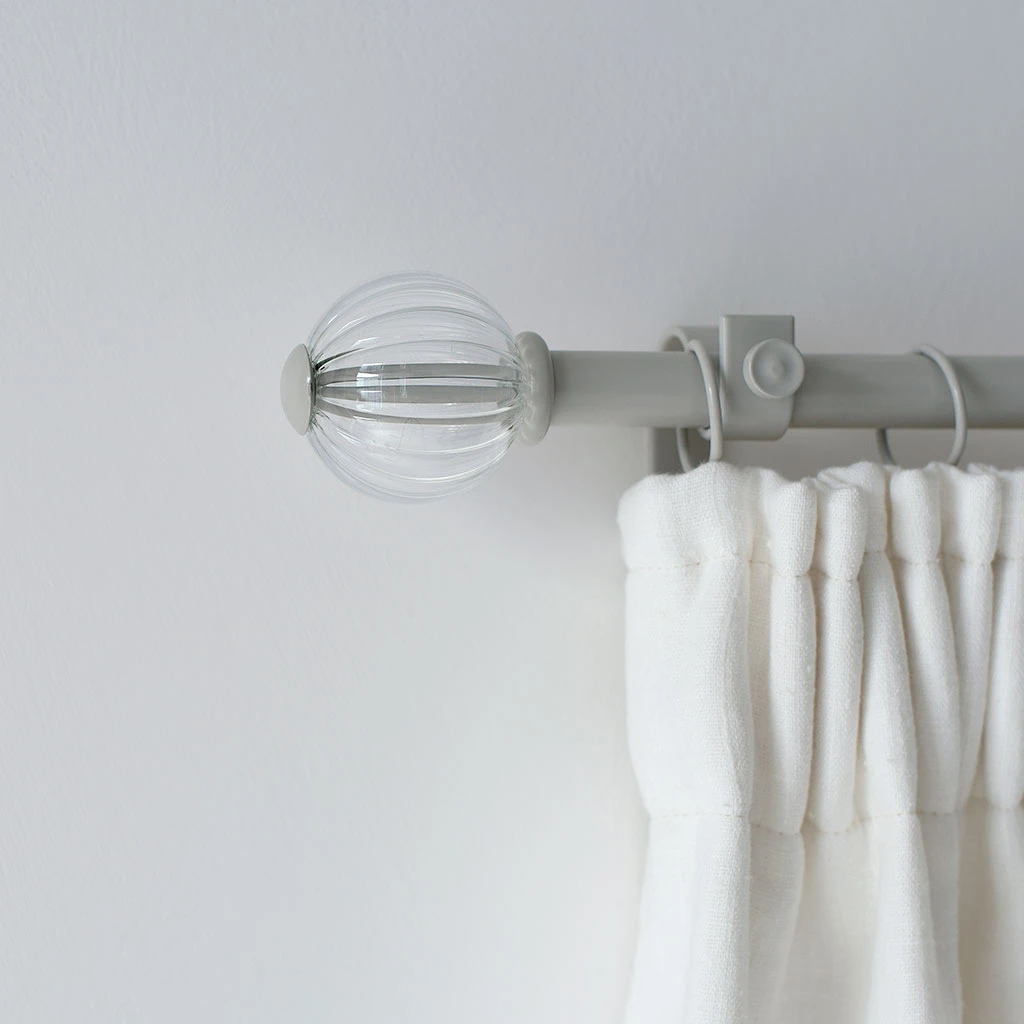 The finials form part of our stunning collection of curtain pole accessories including centre, sleeve, extended and recessed brackets, a variety of curtain rings and a wide range of lovely finials to personalise your look. Once fitted inside the pole, the finials are fixed in place with a tiny grub screw that is located at each end at the back of the pole.