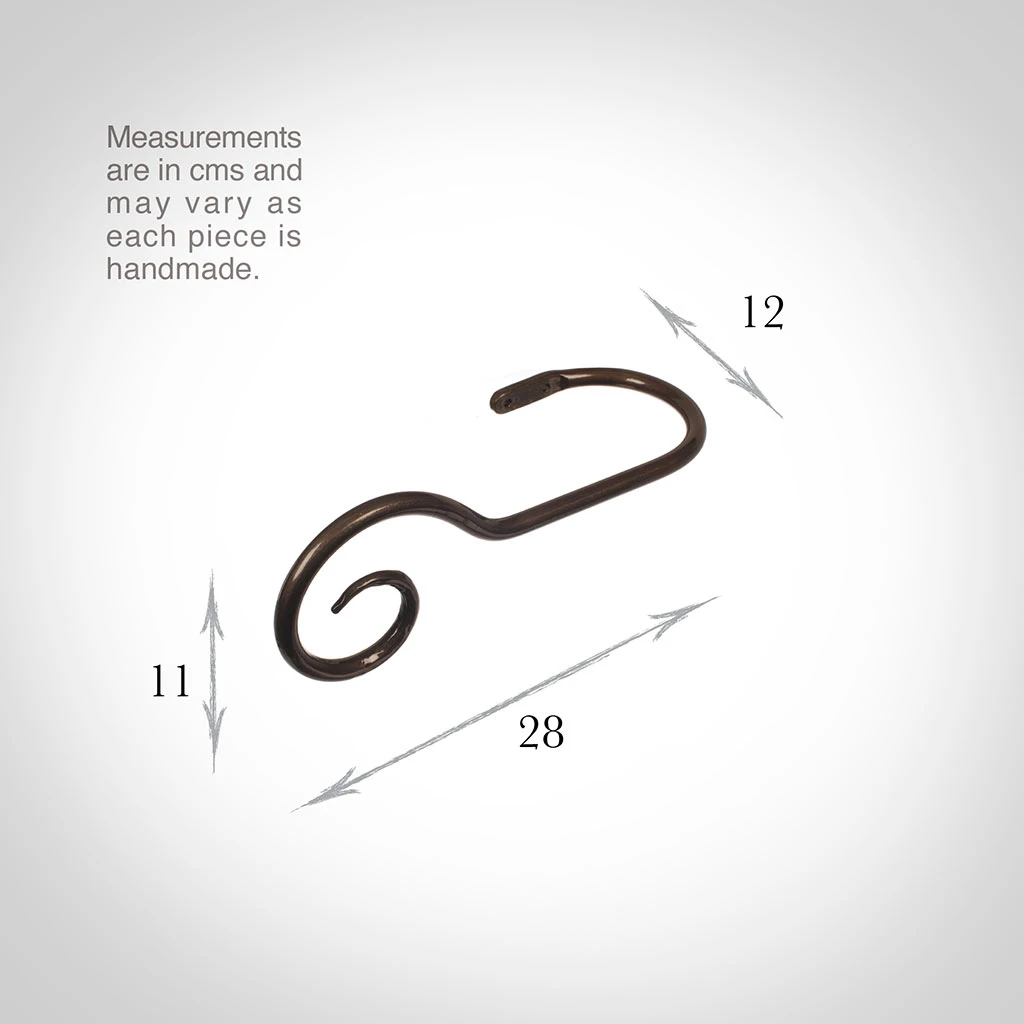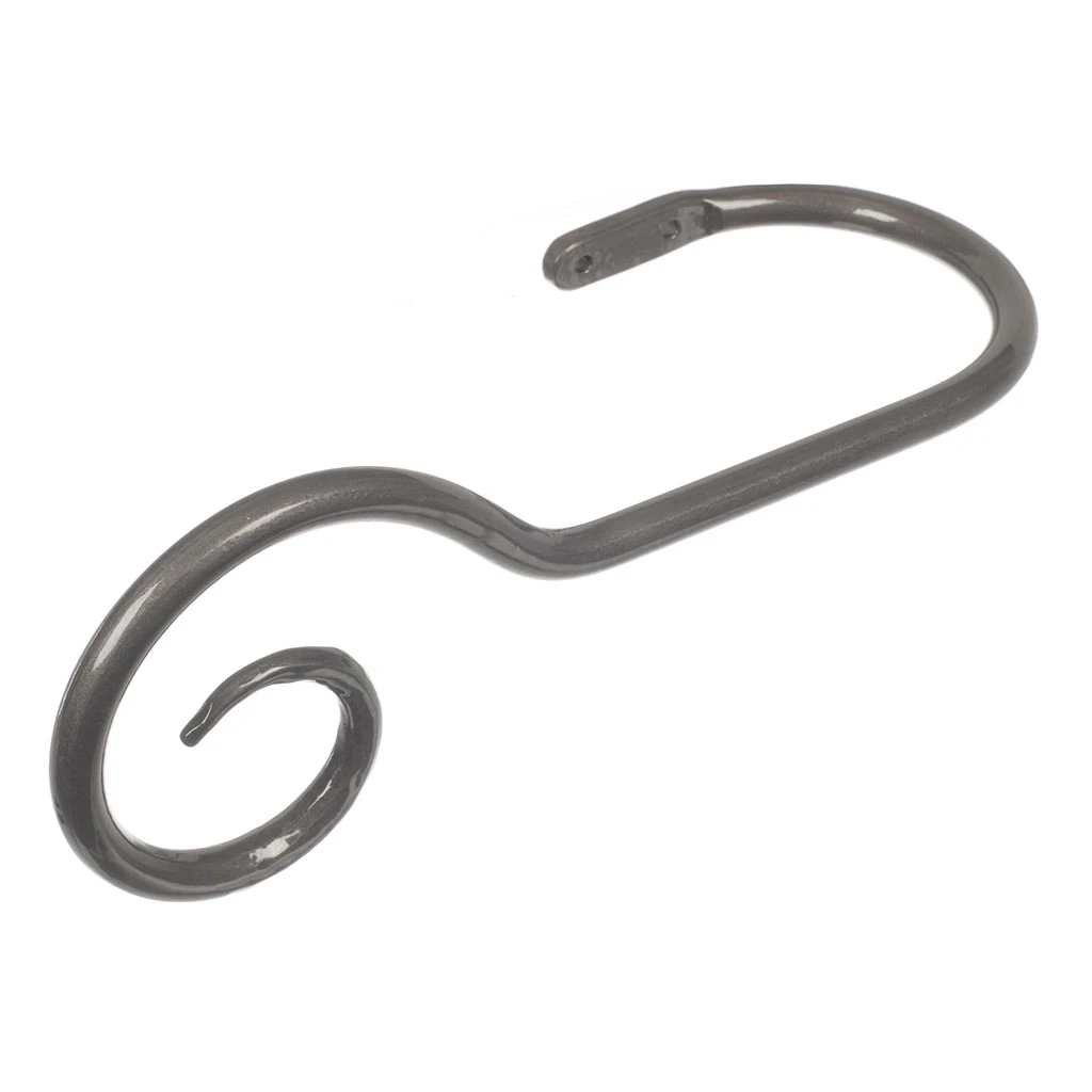A hand forged, solid steel holdback to match our Bishop’s Crook finial. The holdbacks are available in two sizes: this larger holdback is generally recommended where there is more than one width of fabric in the curtain, unless it is a very light, unlined fabric.