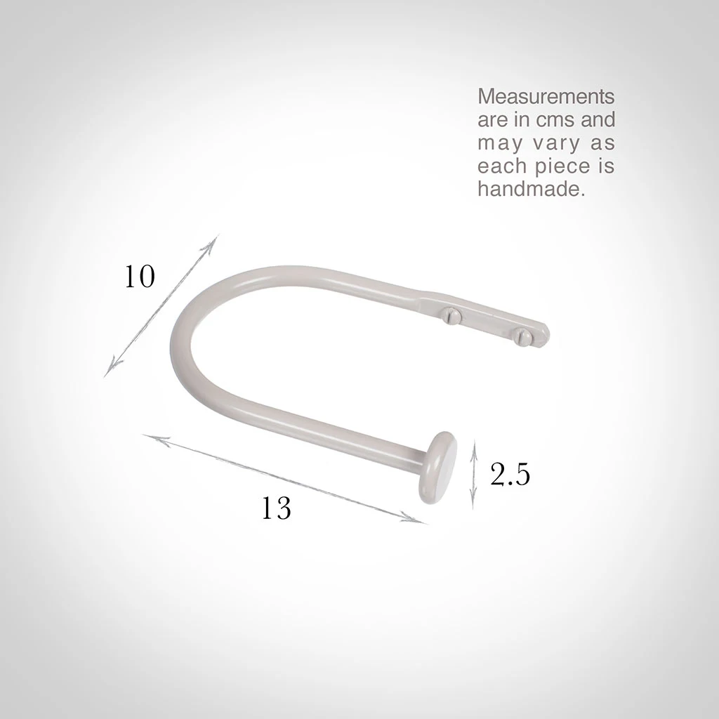 A hand forged, solid steel holdback to match our Button finial. The holdbacks are available in two sizes: this smaller holdback is generally recommended where there is only one width of fabric in the curtain (or more if it is a very light, unlined fabric).