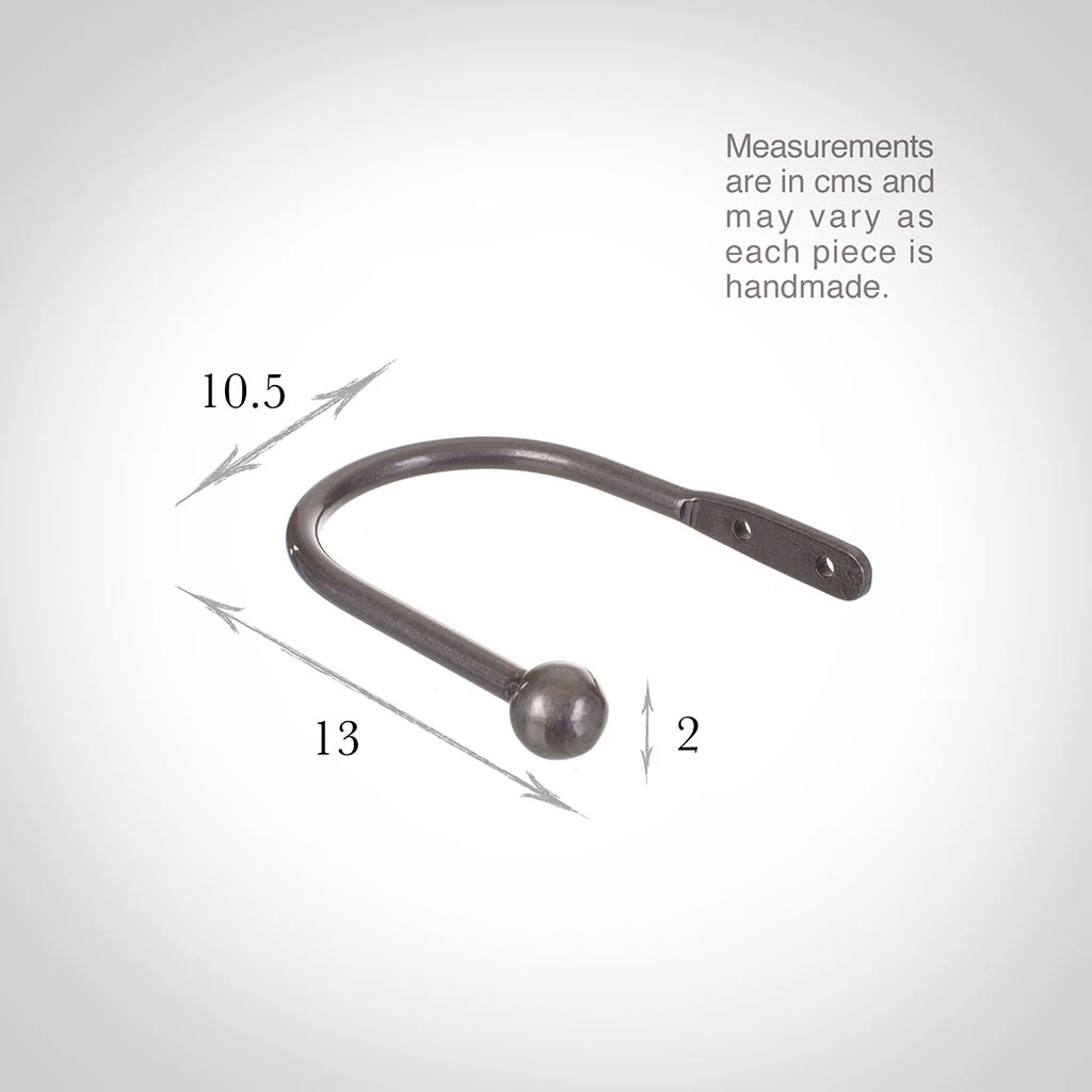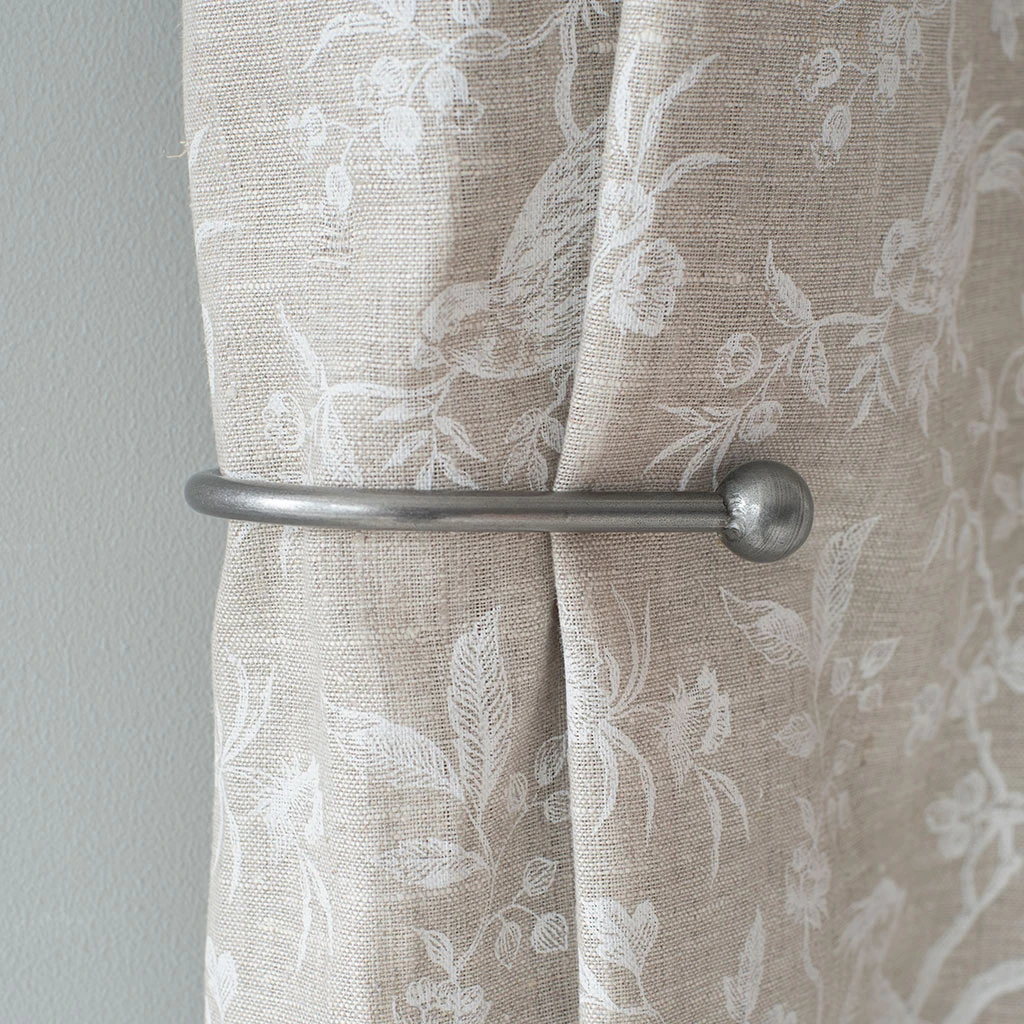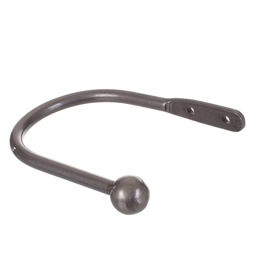 A hand forged, solid steel holdback to match our Cannonball finial. The holdbacks are available in two sizes: this smaller holdback is generally recommended where there is only one width of fabric in the curtain (or more if it is a very light, unlined fabric).